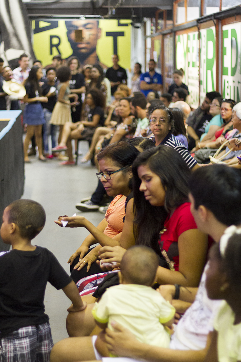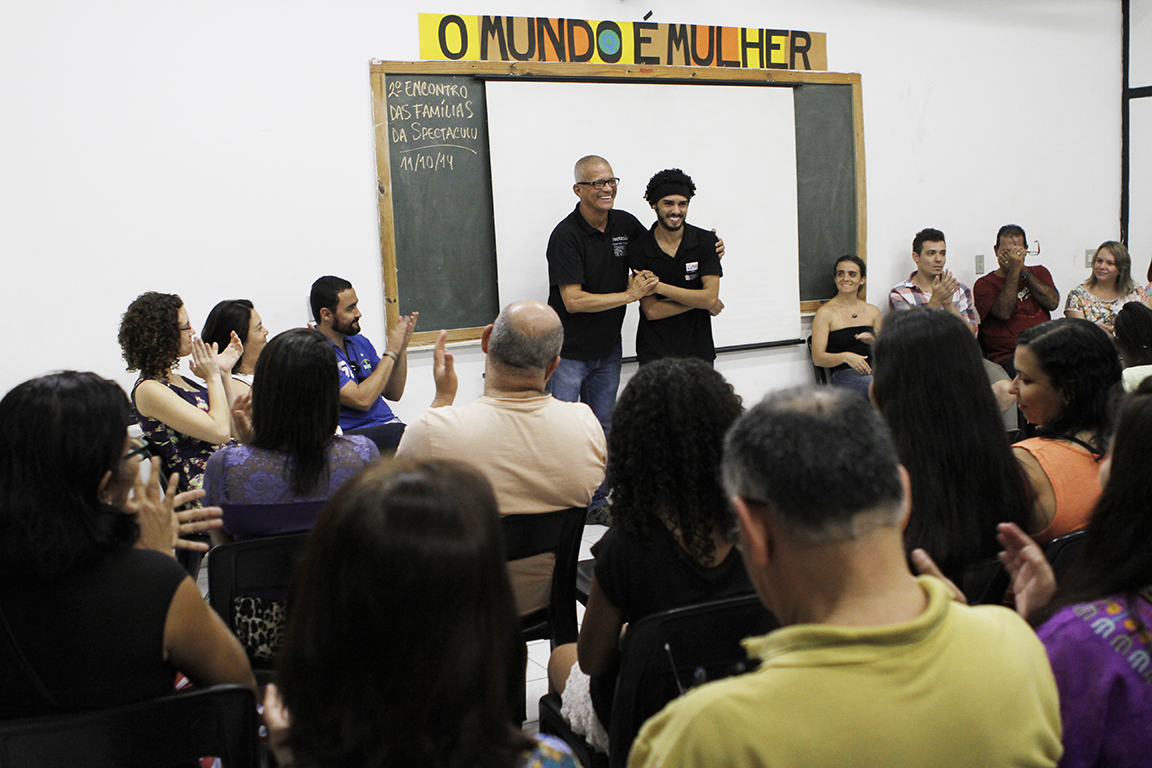 Instrutores e coordenação da Spectaculu também conversaram com os convidados dos alunos e compartilharam com eles os números e principais resultados dos cursos 2014 até o momento. Os jovens Jonas Soares, aluno de Iluminação de 2013 que hoje é técnico responsável de iluminação do Centro de Referência da Música Carioca, e Dalvina Araújo (Maquiagem 2014) falaram sobre suas experiências profissionais pós-Spectaculu aos familiares de seus colegas. “A Spectaculu foi a melhor coisa que aconteceu na minha vida. Aqui eu cresci como pessoa. Valeu a pena demais eu me dedicar, porque é isso que eu quero fazer pelo resto da minha vida”, afirmou Dalvina, que acaba de ser contratada por um laboratório de cosméticos da Baixada Fluminense.