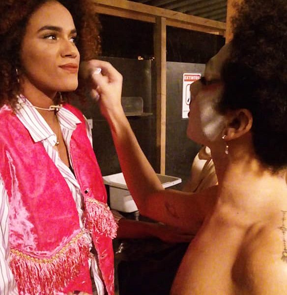 Durante três dias, a Spectaculu foi a sede para a produção dos bambolês com fitas que adornaram a entrada do Arraiá da Arara, realizado no bairro do Humaitá. 10 alunos trabalharam na produção dos adereços e também na montagem do cenário da festa, assinado por Jackson Tinoco. Tecidos exclusivos da Farm foram utilizados pelos jovens na forração dos espaços. Este material foi doado à Spectaculu e poderá ser utilizado em outras produções de cenografia dos alunos.