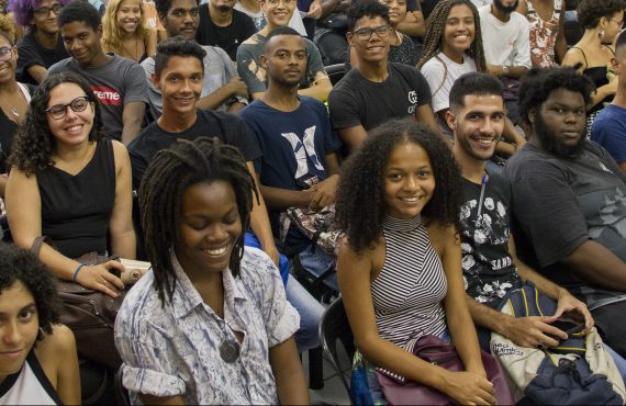 Aula Inaugural 2020 da Spectaculu reuniu diretores, equipe e jovens formados na escola para dar as boa-vindas aos novos alunos. (Créditos: Julianne Gouveia / Spectaculu)