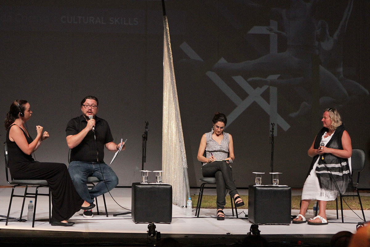 A mesa “Visões artísticas e criativas do mundo técnico” encerrou os debates do dia. Sob mediação da diretora do Celebra Rio 2016 Carla Camurati, Gringo Cardia, Marisa Orth e a produtora executiva da Walk The Plank Liz Pugh falaram sobre as dificuldades de se formar novos técnicos no Brasil e no exterior.