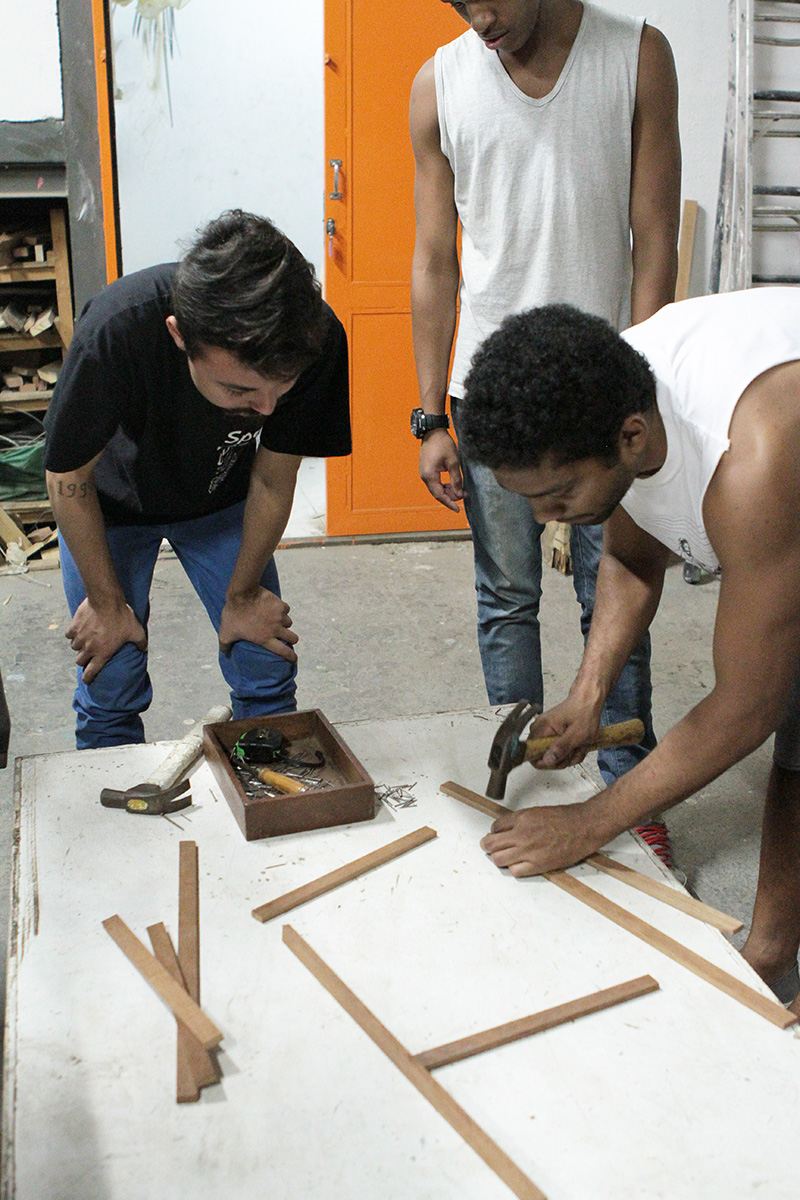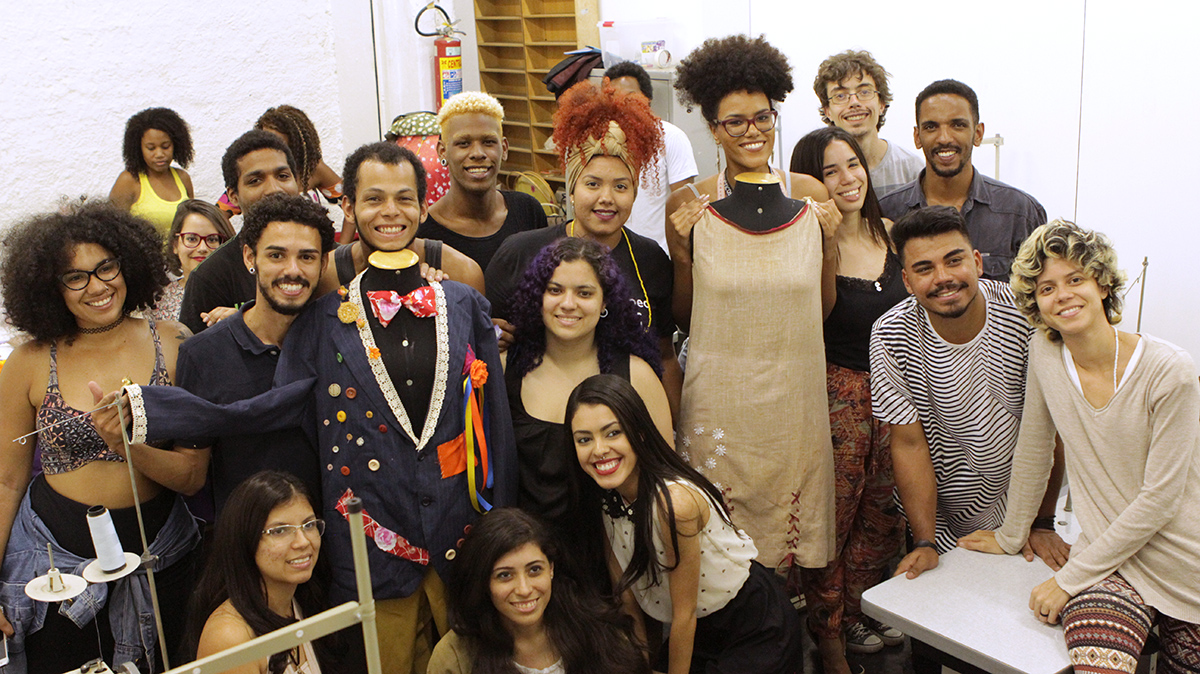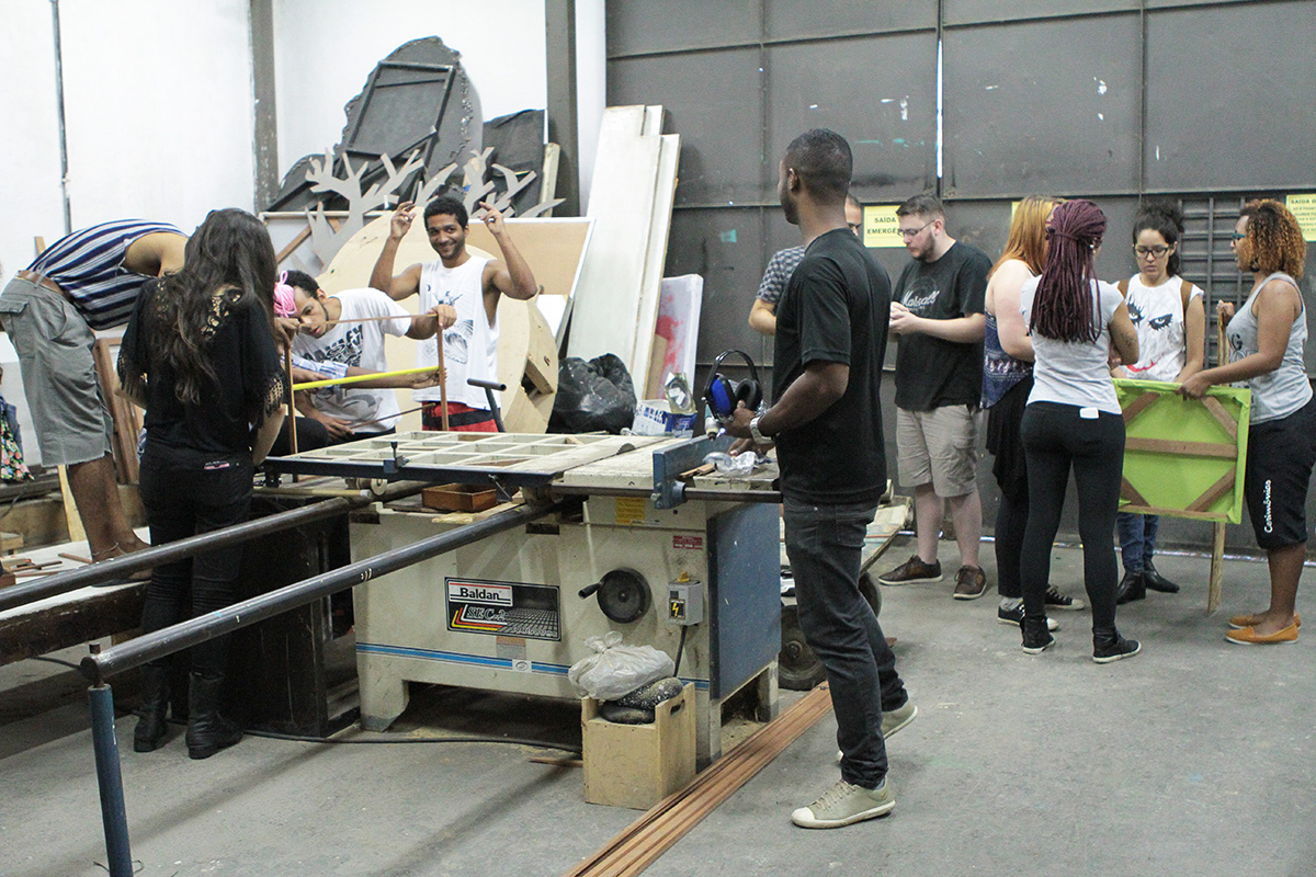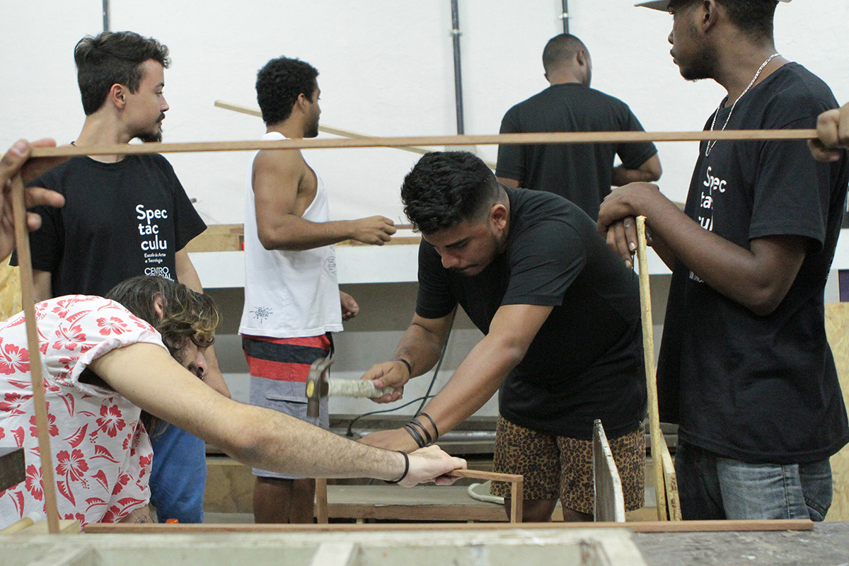 No segundo tempo de aprendizado, jovens profissionais do programa de formação técnica do British Council participaram de uma imersão em Costura & Figurino com a instrutora-assistente Érika Silva. Os participantes se dividiram em dois grupos e tiveram apenas uma hora para criar um figurino, sob a inspiração dos temas cordel e faroeste, com os materiais disponíveis na Spectaculu.
