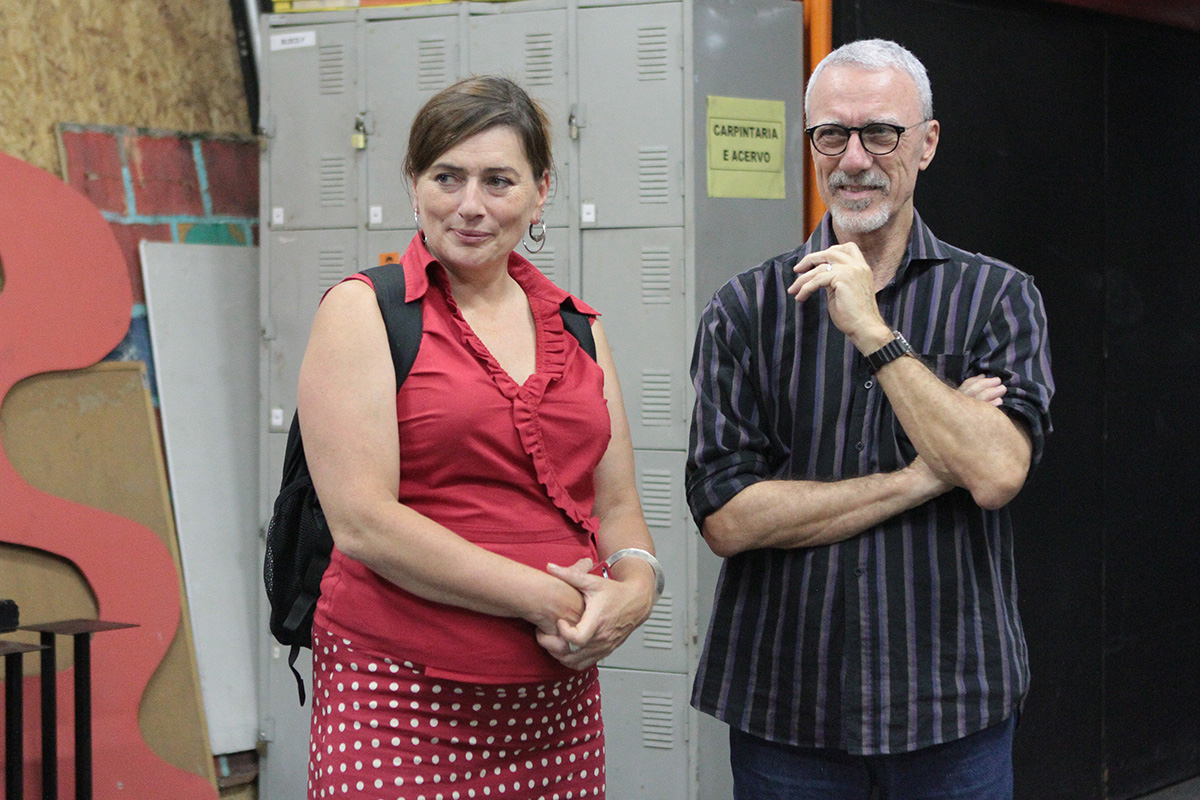 Na masterclass do Backstage To The Future na Spectaculu, Liz contou sobre o trabalho que a Walk The Plank realiza por todo o Reino Unido criando espetáculos com a colaboração de mão de obra local. Ela deu dicas de produção, fortalecimento de redes de contato e apresentação de projetos para patrocinadores. “É preciso pensar grande, mas também adequar os sonhos à sua realidade”, aconselhou. A diretora da Spectaculu Marisa Orth e a coordenadora de projetos especiais, arte e educação do Theatro Municipal do Rio de Janeiro Bruna de Carvalho estiveram presentes. Após a aula inaugural, jovens participantes do Backstage To The Future brasileiros e britânicos fizeram uma imersão, com exercícios práticos, em montagem de cenários oferecida pelo instrutor Alex Augusto.