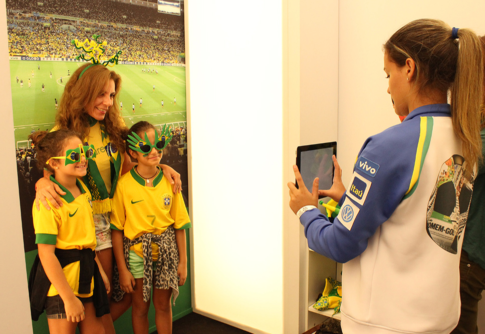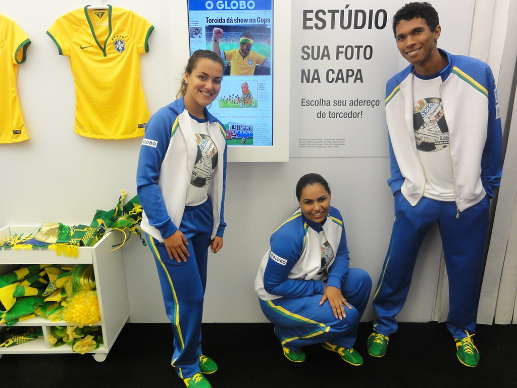 No estúdio Sua Foto na Capa, três jovens assistentes formados na turma de Fotografia 2013 se revezam até o fim do Mundial para fazer cliques fotográficos temáticos do público, que pode tirar fotos com a camisa do Brasil e diversos adereços verde-e-amarelo em cenários que reproduzem arquibancadas de estádio. As imagens são registradas com um tablet e, através de um aplicativo especialmente desenvolvido para o projeto, tornam-se uma montagem com a capa do Jornal O Globo, enviada diretamente para o e-mail do visitante e exibida em telões no lounge do espaço.