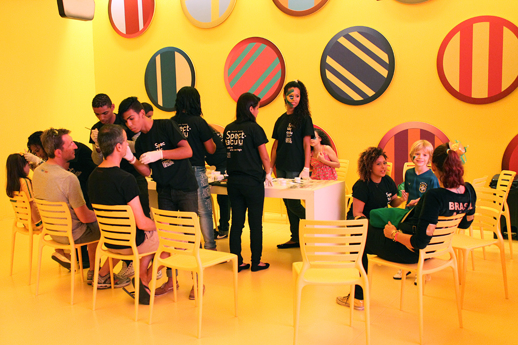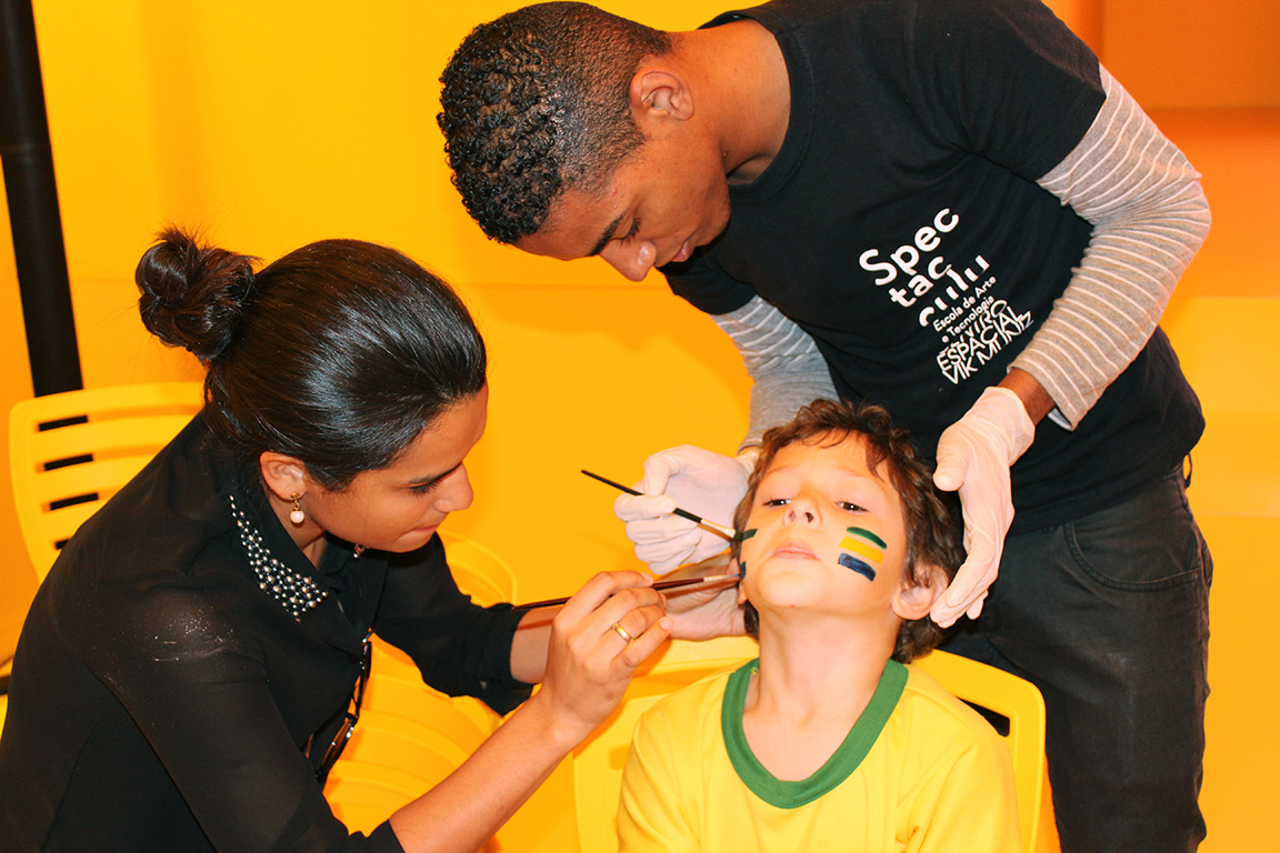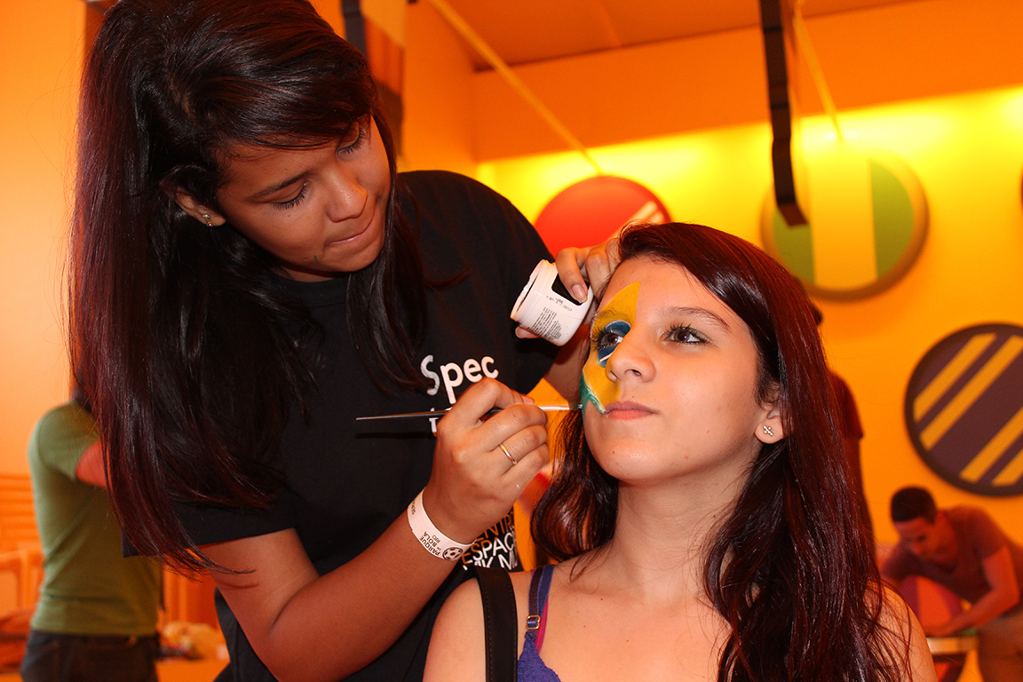 Durante os jogos do Brasil da primeira fase da Copa, 10 estudantes e assistentes já formados pela instituição ofereceram aos visitantes a oficina de pintura, que adornou os rostos dos torcedores com maquiagem artística temática para o Mundial. Bandeiras, borboletas, grafismos ou simples efeitos de make up encantaram torcedores das mais diversas faixas etárias e gêneros, que fizeram fila no Auditório Multimídia para torcer pelo Brasil com ainda mais entusiasmo.