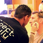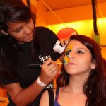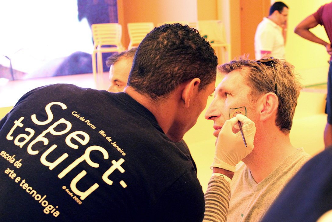 “A concepção visual da maquiagem foi desenvolvida pelo nosso presidente Gringo Cardia, que aproveitou as cores e grafismos das bandeiras das seleções participantes na Copa do Mundo para criar os desenhos”, explica Dione Bento, instrutora da Spectaculu que coordenou os trabalhos de beleza juntos aos jovens da instituição. Em sua primeira experiência profissional no ramo da maquiagem, a aluna Dalvina de Araújo, de 19 anos, ficou encantada com o trabalho: “Eu adorei. Foi fundamental aprender novas técnicas com quem tem mais experiência, como os colegas veteranos da Spectaculu”, conta a moradora de Duque de Caxias.