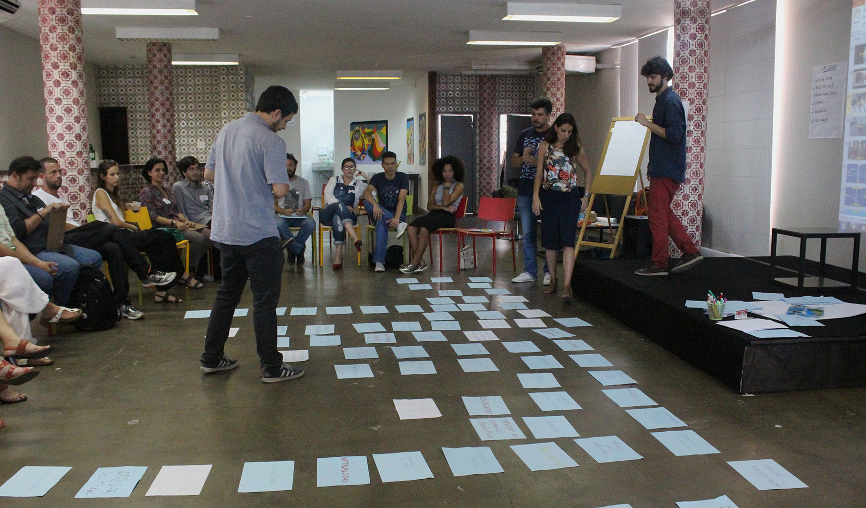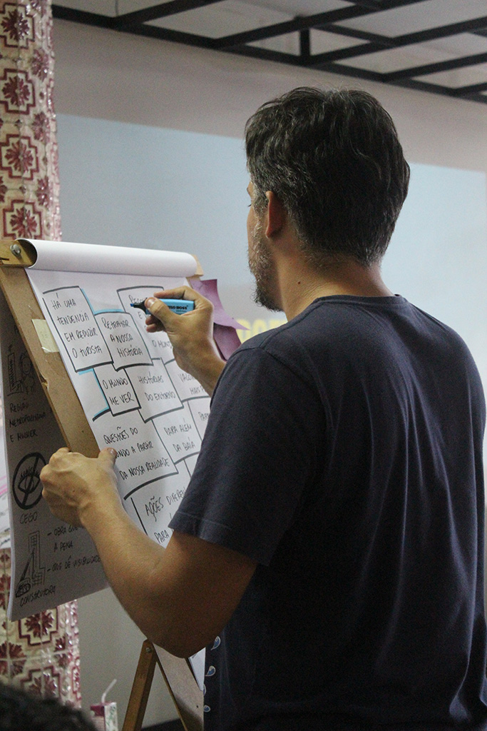 Cerca de 30 pessoas, entre profissionais de diversas áreas e público em geral, estiveram na equipe que, durante três encontros, mapeou os interesses da comunidade no protótipo de um museu que une os conceitos de humanidade, oceano e tecnologia. “A gente entende que a resistência da comunidade é grande se não há diálogo. Quando a população é engajada, o resultado tende a ser mais inclusivo”, explica a diretora da M+E Design Magui Kampf, responsável pela montagem de exposições como “Senna Emotion” e Festival Reboot. O trabalho foi desenvolvido em parceria com a Carioteca, empresa de gestão e facilitação de processos.