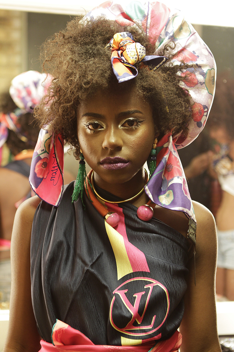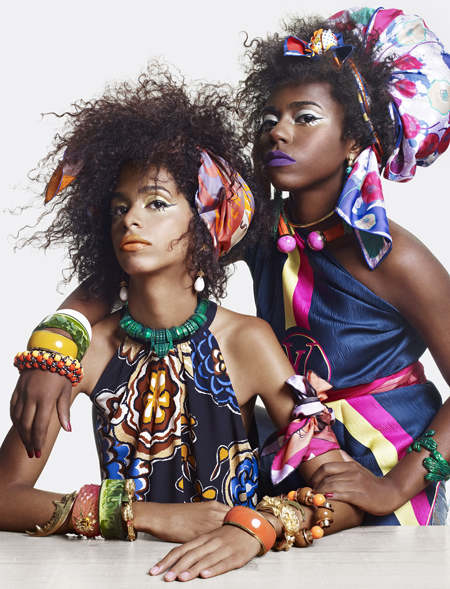 Dalvina Araújo, Isabela Araújo, Jaqueline Ferreira, Jaqueline Xavier, Leticia Amaral, Mariane Ferreira, Mayara Oliveira, Regiane Santos, Thainara Santana e Tamara Assis estrelaram um ensaio de quatro páginas, inteiramente produzido com o uso de acessórios. Com produção de moda de Yasmine, as jovens apresentaram looks vibrantes, com muitos lenços, amarrações, joias e adornos diversos que evidenciaram ainda mais a beleza negra. Os jovens Allan Machado, Karine Ibraim (Costura & Figurino 2014), Heidi Caballero e Igor Bahia (Adereços 2014) também ofereceram suporte à equipe da editora. Antes e durante o ensaio, as meninas eram pura ansiedade: “Fiquei nervosa, mas o JR Duran é muito divertido, então, foi tranquilo. É incrível estar ao lado de pessoas que a gente só vê de longe e poder interagir com elas”, conta Mariane Ferreira, a primeira jovem a ser fotografada no dia e destaque de página inteira.