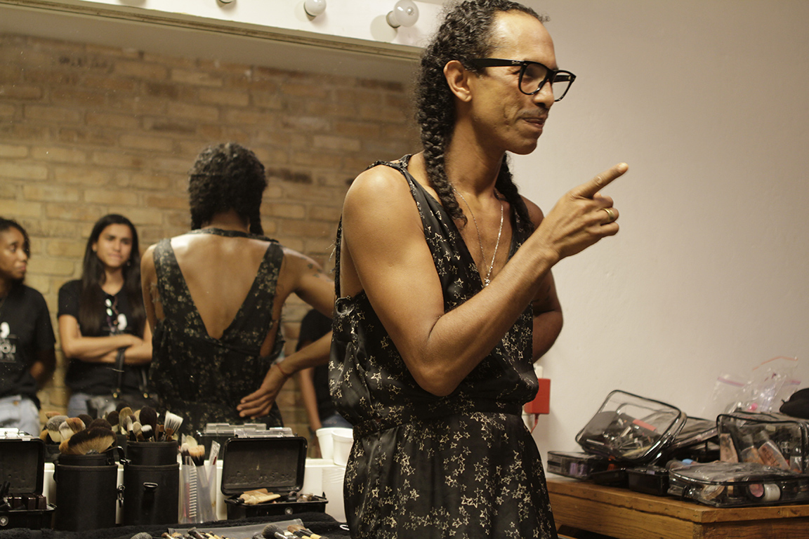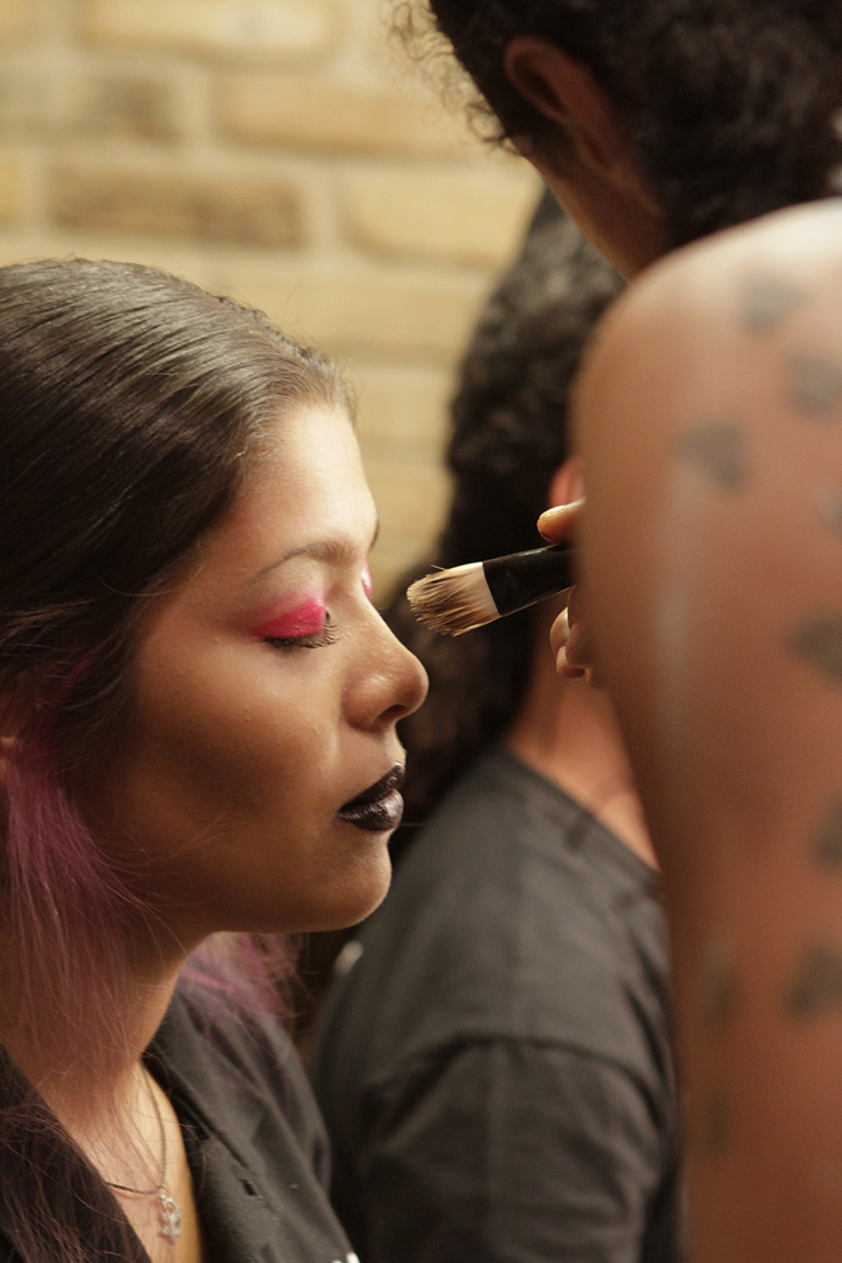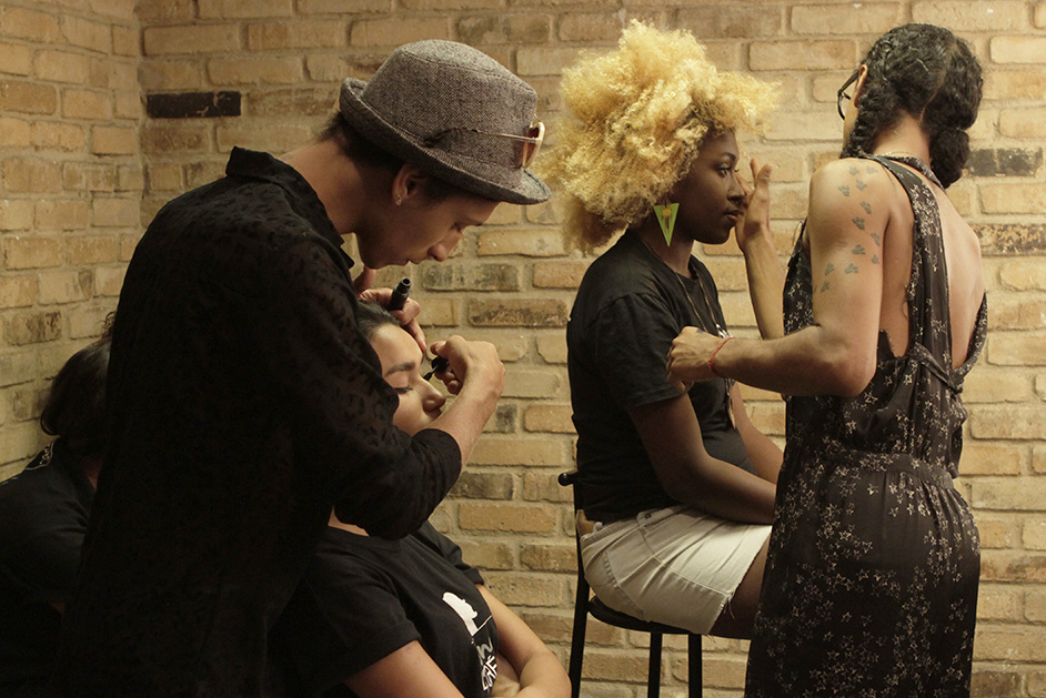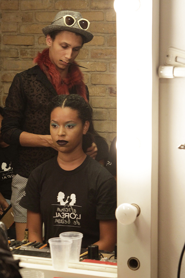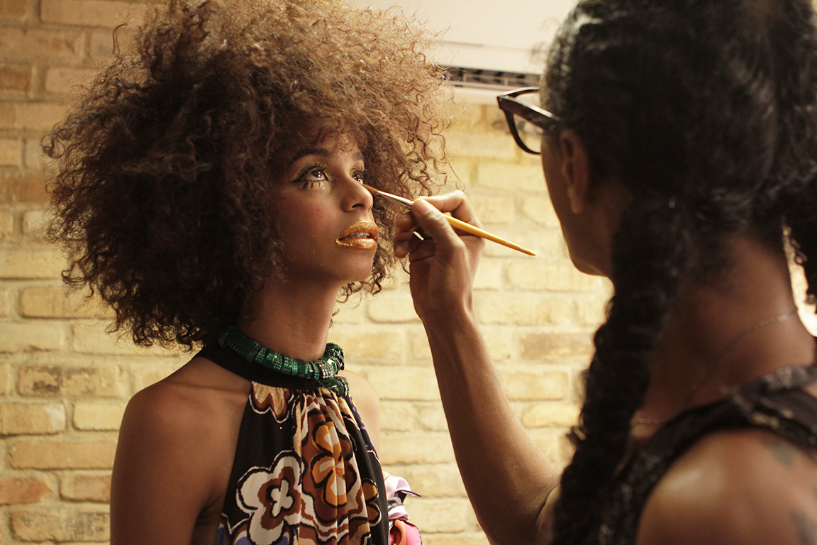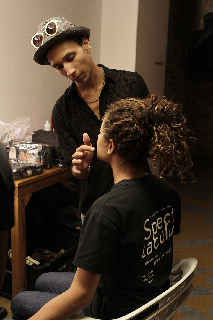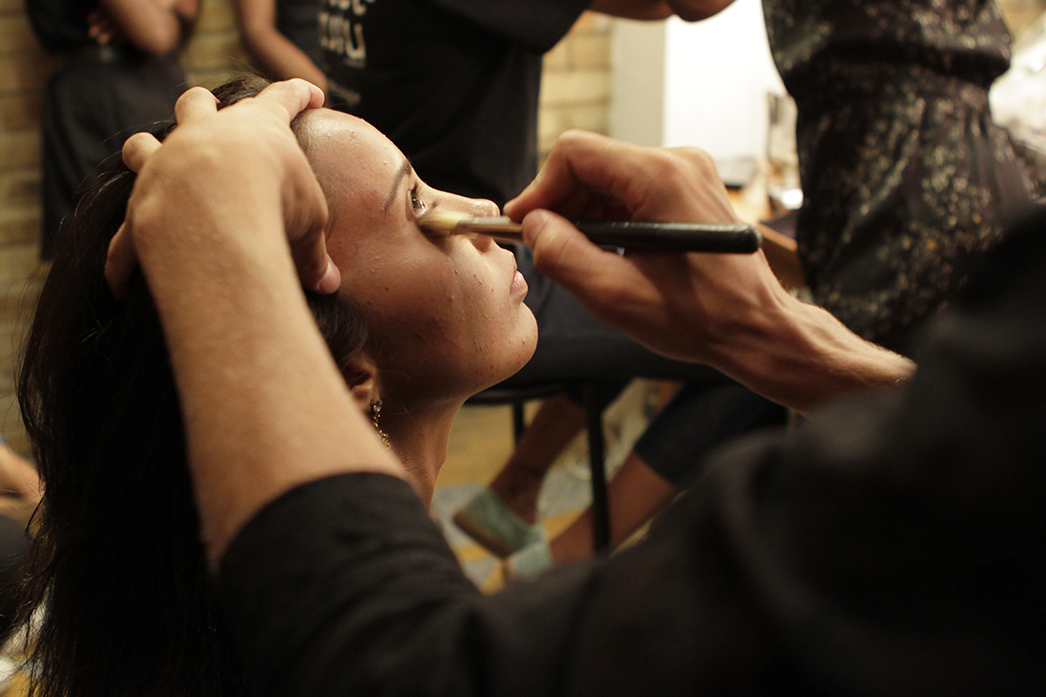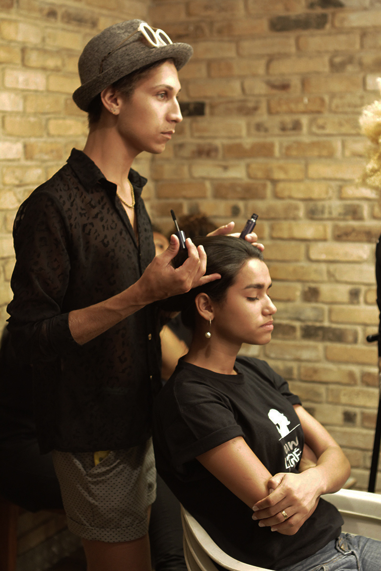 A produção de beleza ficou a cargo do beauty artist Max Weber, que teve ao seu lado o assistente Luan Veroneses (Maquiagem 2012). “Sempre que venho ao Rio, trabalho com o Luan devido à sua atenção e a disponibilidade. Estou muito feliz por estar aqui, neste projeto”, contou Max às jovens modelos e às recém formadas Bianca Carvalho, Monique Balbuena (Maquiagem 2014), Meirielem de Vargas e Jessica Assis (Cabelo 2014), que também lhe prestaram assistência nos camarins. O cabeleireiro e maquiador preferido das grandes modelos deu uma verdadeira aula às jovens, com dicas e toques da vivência da profissão que deixaram todas muito impressionadas. “O Max foi super paciente, sempre se preocupando com a gente e como estávamos nos sentindo”, contou Jessica Assis.