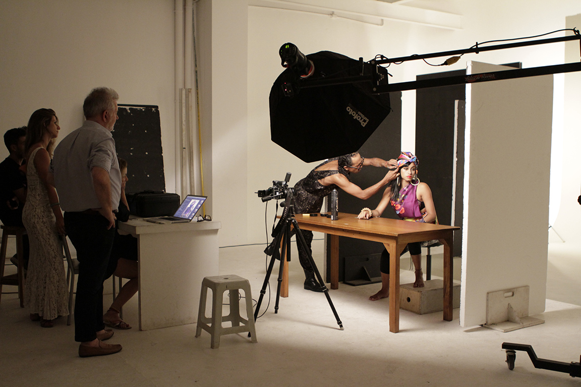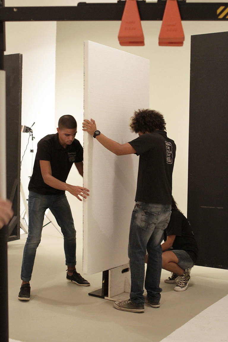 O dia também foi muito especial para os alunos da turma de Fotografia 2014, que fizeram registros de making of e acompanharam de perto a montagem de luz e os cliques de JR Duran. O grande fotógrafo conversou longamente com os jovens a respeito da rotina da profissão e de sua visão sobre o mundo da fotografia. “O mais importante para o fotógrafo é saber olhar. Temos que olhar o que ninguém vê”, doutrinou. A jovem Anyla Monique (Contrarregragem & Camarim 2014) também ofereceu suporte ao trabalho em estúdio.