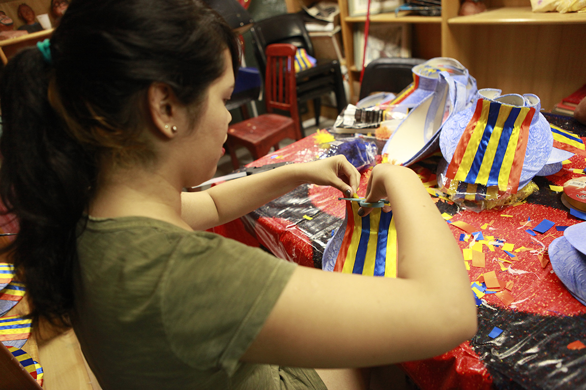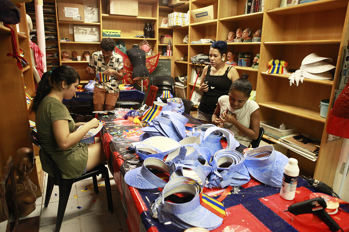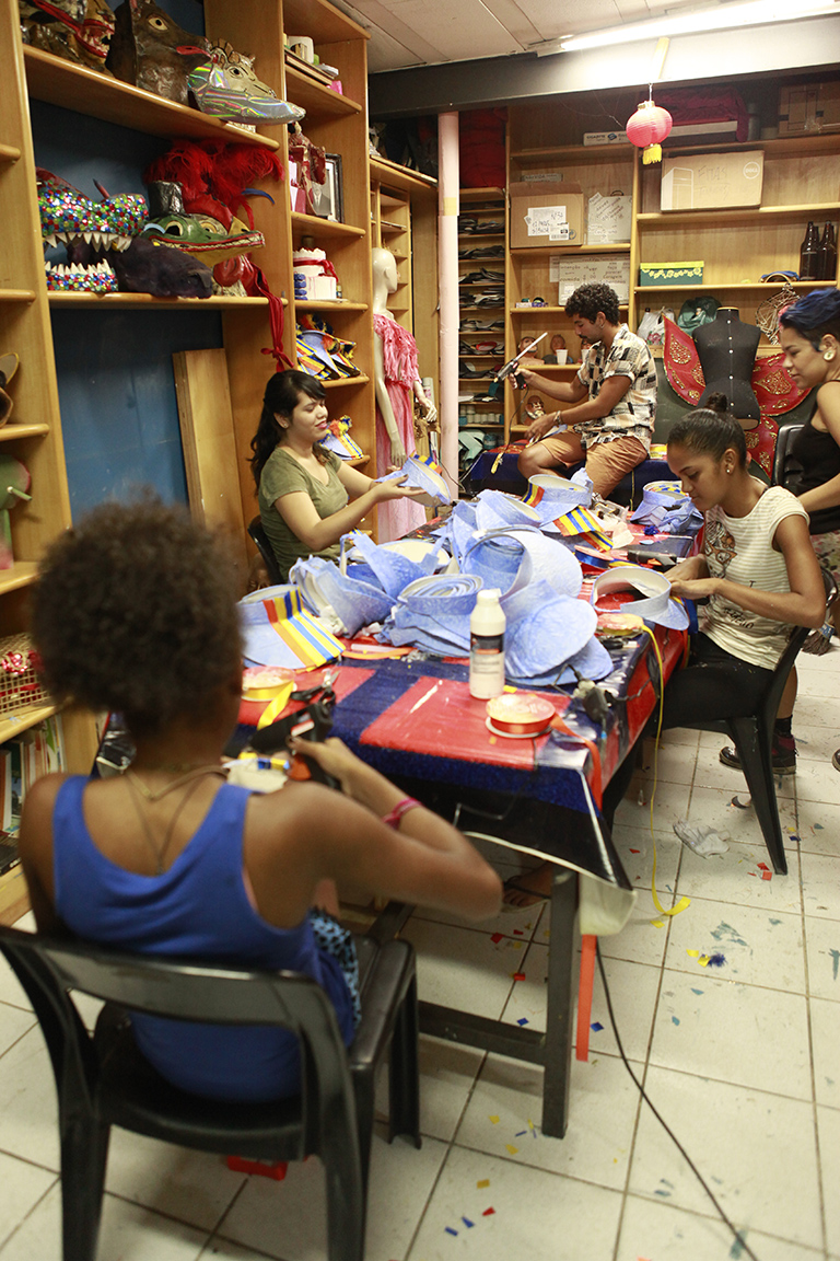 A Spectaculu ajudou a deixar ainda mais bonito o Bloco Escravos da Mauá, parceiro do Núcleo de Trabalho Spectaculu Produções desde 2011. Com concepção de Eric Fuly, produção de Priscilla Ferreira e coordenação de produção de Carla Vilardo, quatro jovens recém-formados da Spectaculu confeccionaram 150 adereços de cabeça. As viseiras, adornadas com fita e pompom colorido por Gisele Salvador, Thatiane Oliveira, Igor Bahia e Heidi Caballero, foram usadas pelos integrantes da bateria do bloco durante o cortejo de pré-carnaval que animou foliões pelas ruas do bairro da Saúde no último dia 8.