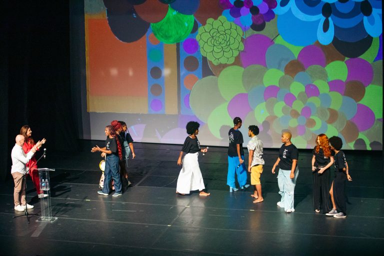 Beatriz Milhazes, Maxwell Alexandre, Ella Fernandes e Amaury Lorenzo foram os artistas parceiros da instituição homenageados durante a festa, que ressaltaram em suas falas o impacto positivo da escola na sociedade. Nosso querido Fernando Santos, ex-professor de Contrarregragem e Camarim, que nos deixou em outubro, recebeu uma homenagem póstuma de todo o auditório com o apoio de sua última turma.