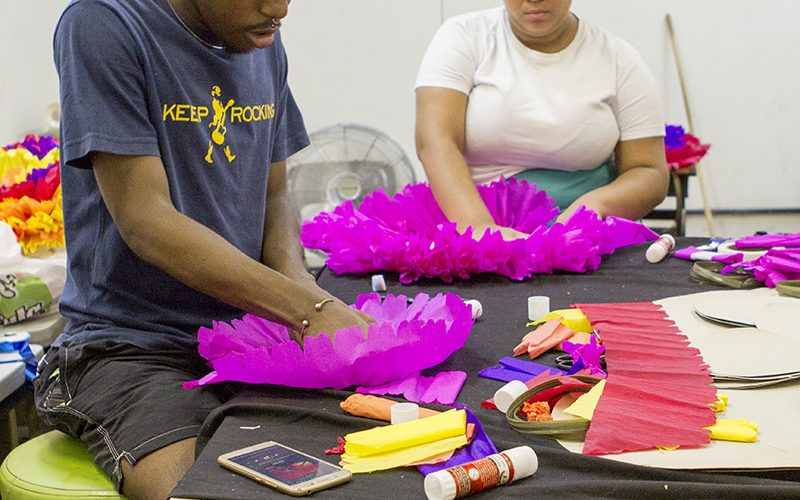 Spectaculu mantém parceria com Escravos da Mauá Spectaculu e Escravos da Mauá seguem firmes no fortalecimento de seus longos laços de parceria. Jovens profissionais da escola mantiveram a tradição e produziram adereços de cabeça para o desfile 2019 do bloco, que encheu de foliões as ruas da Zona Portuária no último domingo antes do carnaval. Jovens produzem adereços para Escravos da Mauá (Créditos: Julianne Gouveia / Spectaculu) Sob a direção criativa de Eric Fuly e supervisão da coordenadora do Núcleo de Trabalho