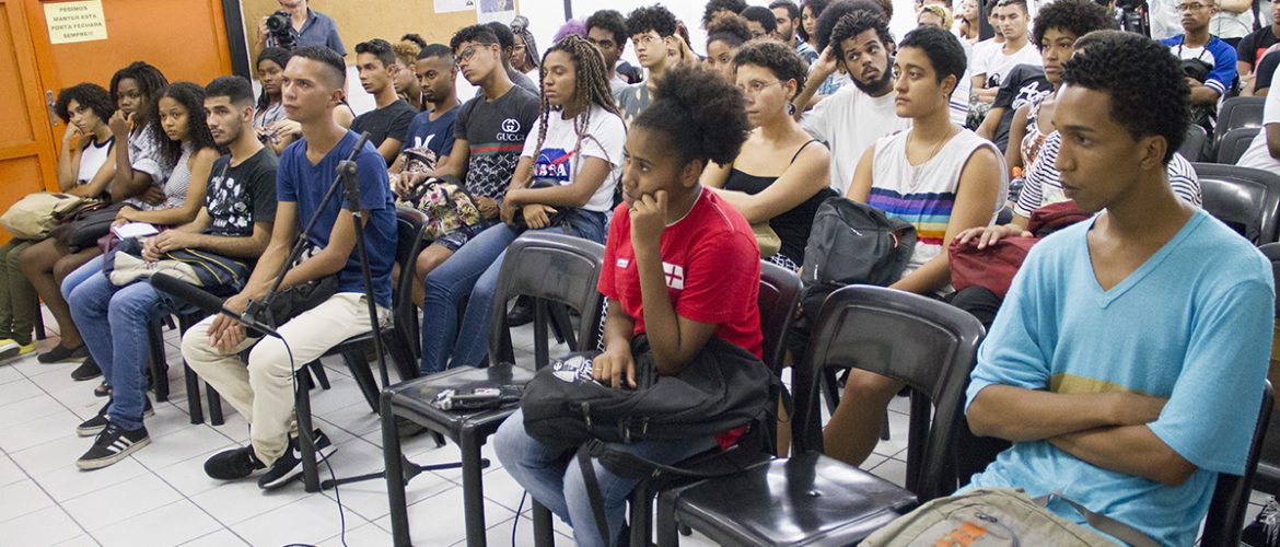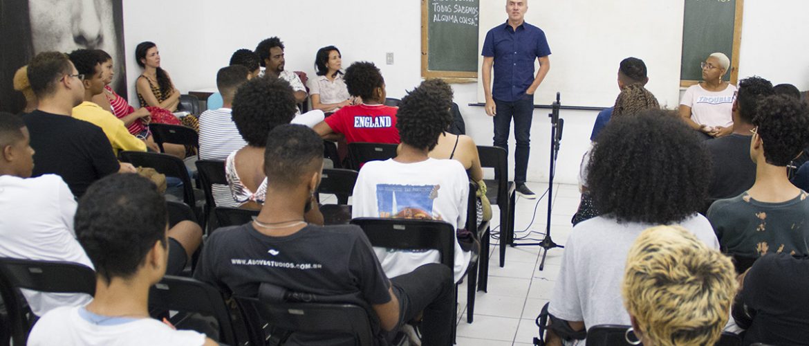 O ano letivo começou com tudo! A Spectaculu recebeu os jovens 2019 com a já tradicional Aula Inaugural, realizada em 11 de março. Em uma tarde de troca de experiências, o diretor Gringo Cardia, equipe e técnicos formados da escola deram as boas-vindas aos 82 estudantes que iniciam agora seus estudos. Gringo compartilhou a história e as conquistas alcançadas pela Spectaculu, que em 2019 completa 20 anos de fundação. Os jovens profissionais Jennifer Ayalem (Beleza 2018), Kellyan Fortes (Fotografia 2018), Lucas