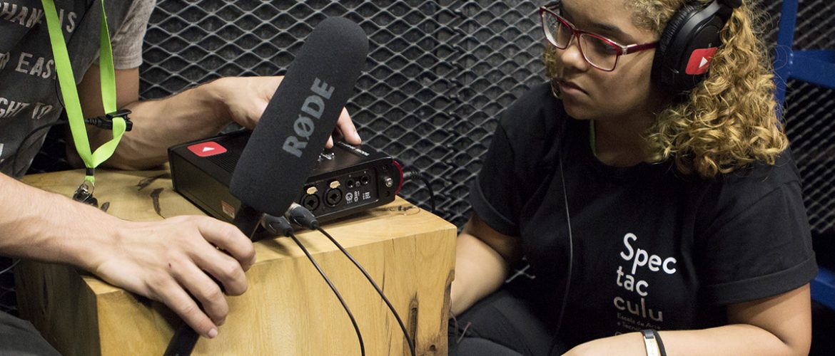 Spectaculu realiza parceria com festival internacional A Spectaculu é uma das organizações parceiras do Festival Mulheres do Mundo – WOW. Jovens do Núcleo de Tecnologia estão produzindo conteúdo para as redes sociais do evento, que acontece de 16 a 18 de novembro na Praça Mauá. Vídeos gravados por alunos da Spectaculu no YouTube Space Rio estão sendo divulgados nos canais do Festival Mulheres do Mundo – WOW. (Créditos: Julianne Gouveia / Spectaculu) Desde agosto, participantes do curso de Vídeo Digital, realizado pela