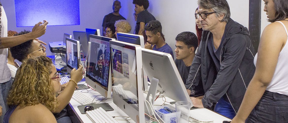 Artista britânico volta à Spectaculu e conhece alunos 2018 Depois de oito anos, o artista digital britânico Gary Stewart voltou à Spectaculu na semana passada. Ele ofereceu um workshop de VJ e Mídias Digitais para alunos de Fotografia e Vídeo & Roteiro 2018 na última quinta-feira, 18. Gary Stewart é artista associado da People’s Palace Projects, organização parceira da escola. Ele é um dos artistas convidados da Flup – Festa Literária das Periferias e vai fazer uma instalação visual no evento,