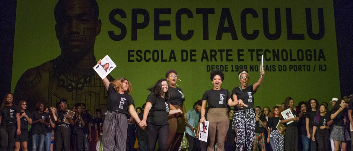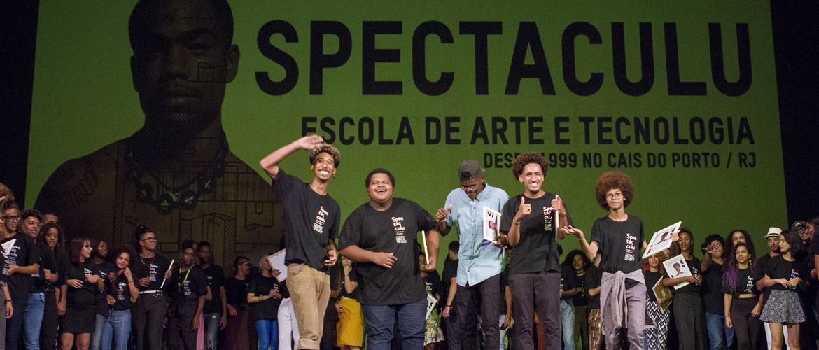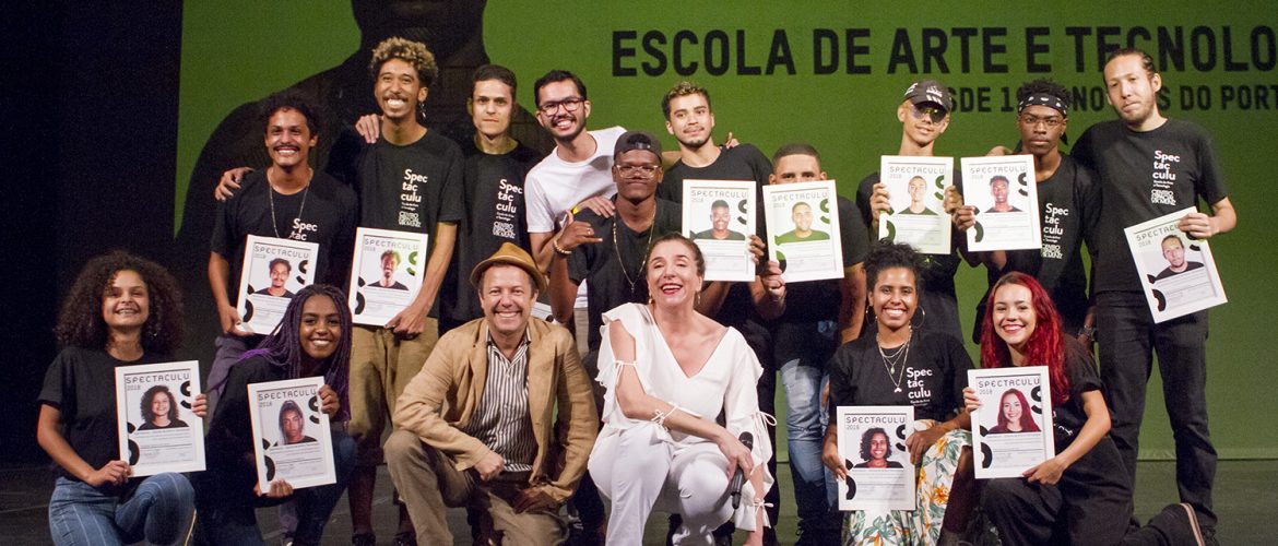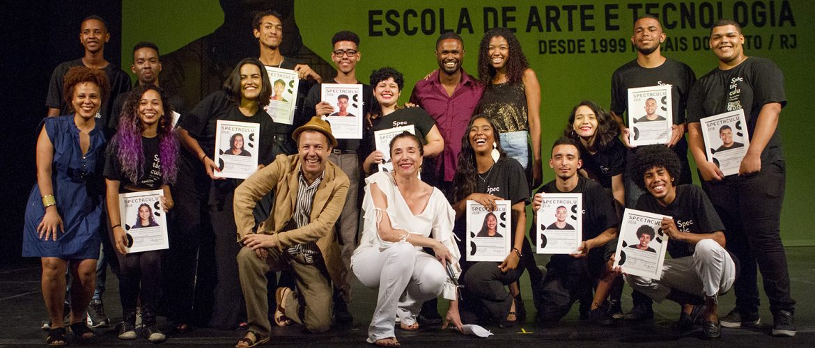 Spectaculu encerra 2018 com recorde de alunos certificados O Theatro Municipal do Rio de Janeiro abriu suas portas para os jovens da Spectaculu em 15 de dezembro e, pelo quarto ano, foi a sede do evento de formatura 2018 da escola. Sob o comando da diretora Marisa Orth, mais de 100 jovens receberam certificados e apresentaram os resultados de dez meses de formação em curtas-metragens, música e dança para 400 convidados. Alunos comemoram a Formatura 2018 da Spectaculu. (Créditos: Myllena Araújo
