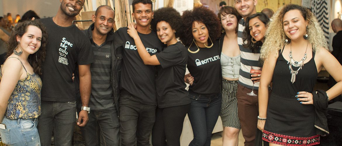 Marca inglesa realiza evento em apoio à Spectaculu Para celebrar o sucesso de sua participação nos Jogos Olímpicos Rio 2016, a marca britânica de moda sustentável Bottletop realizou uma grande festa no Rio em 18 de agosto. A grife levou atrações especiais e uma pop-store para a Antiga Fábrica da Bhering. O evento foi realizado em suporte à Spectaculu, um dos projetos educacionais apoiados pela Bottletop, e contou com a ajuda de alunos da escola nos bastidores. Jovens da Spectaculu durante