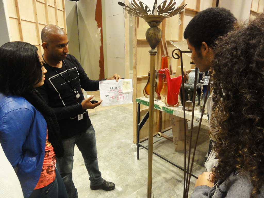 Profissionais de contrarregragem, cenografia e camarim Record também conversaram com os alunos sobre o cotidiano de suas respectivas áreas de atuação. Foi o caso do líder dos contrarregras Sirney, que explicou aos jovens um pouco do dia a dia no ofício, desde o recebimento do roteiro e da planta baixa, essencial como referência no posicionamento de móveis e objetos cênicos, até a diferença do trabalho do contrarregra de cena e o contrarregra de montagem/rua.