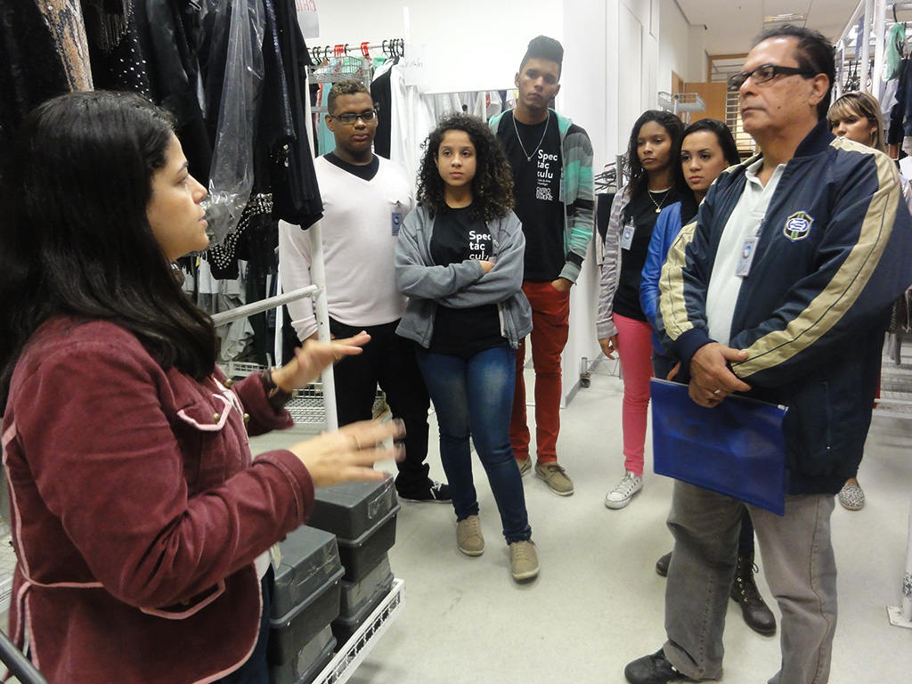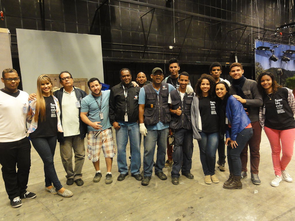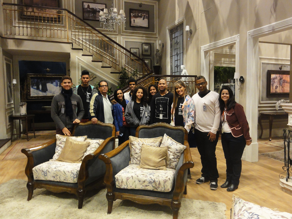 Acompanhados do instrutor de Contrarregragem da Spectaculu Fernando Santos e da coordenadora do Núcleo de Trabalho Spectaculu Produções Carla Vilardo, alunos e ex-alunos tiveram a oportunidade de acompanhar a rotina e ver em detalhes os cenários do complexo de estúdios, como os espaços produzidos para “Plano Alto”, a próxima minissérie da Record, e da novela “Vitória”, atualmente no ar no canal.
