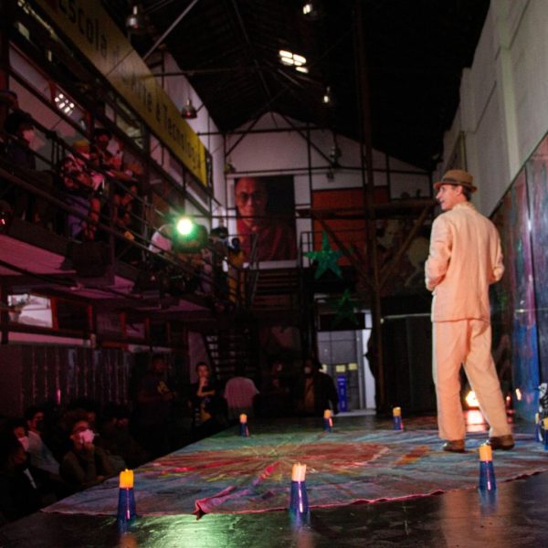 A tarde do dia 12 de maio foi especial! Nosses alunes receberam a visita do ator Aramis Trindade e também tivemos a oportunidade de assistir no palco da Spectaculu a peça “Romeu e Julieta, Cordel de Ariano Suassuna”. O espetáculo em forma de cordel conta a história de amor de William Shakespeare na visão de Ariano Suassuna, misturando o erudito com o popular. No primeiro ato, o ator dá vida e emoção ao poema de 98 sextilhas acompanhado pela música Armorial da trilha sonora com flautas de Zé da Flauta e uma viola de 12 cordas de Tuca Araújo. No segundo ato, Aramis “incorpora” Ariano Suassuna III, em uma mini aula espetáculo, introduzindo ao público informações sobre a origem da estória de Romeu e Julieta, as diferenças entre a versão de Shakespeare e a de Suassuna, a literatura de cordel, o movimento Armorial, a heráldica, cultura popular e “causos do mestre” com dinamismo e humor.