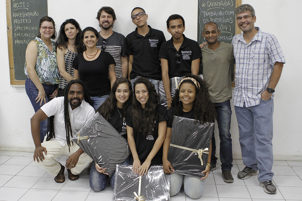 Alunos do Núcleo de Arte & Tecnologia (Fotografia e Tratamento de Imagem) posam com juradores, instrutores e coordenação da Spectaculu