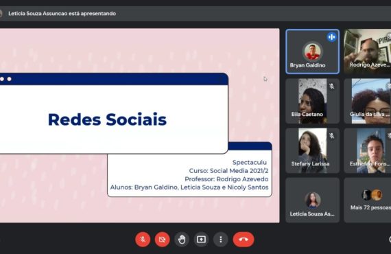 Spectaculu encerra formação virtual com lives Depois de quase quatro meses de atividades, chegaram ao fim as aulas dos Cursos On-line 2021.2 da Spectaculu. O evento Encerramento 2021 marcou o término do ano letivo e aconteceu em 15 e 16