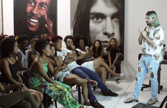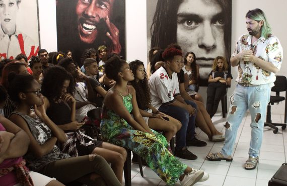 O estilista Thomaz Azulay ofereceu um workshop para jovens da Spectaculu em 26 de maio. O fundador da marca The Paradise bateu um papo inspiracional com os alunos sobre o universo da moda. Ex-diretor criativo da grife de moda praia