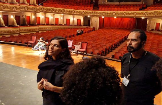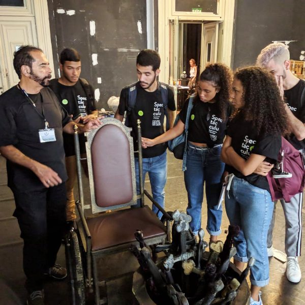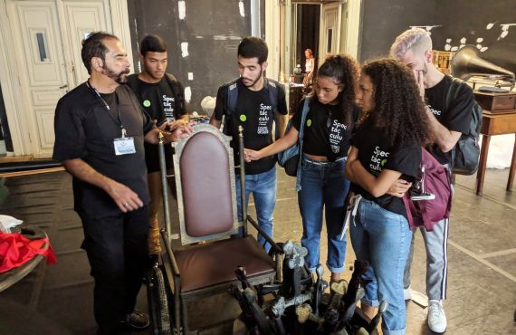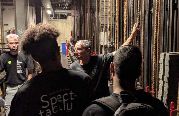 Os futuros contrarregras e camareiros da Spectaculu também acompanharam a montagem da ópera ‘Fausto’, que está em cartaz no Theatro Municipal do Rio de Janeiro até 28 de julho. O espetáculo marca as comemorações de 110 anos de fundação da casa.