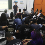 Pedro Padilha (Vértice Marketing), Tiago da Marta, Julia Sampaio (ACasaGringoCardia) e Matheus Meira (ACasaGringoCardia) participam da apresentação de portfólios de Tratamento de Imagem 2015.1 (Foto: Gabriela Falcão)