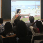 A instrutora do Olhar Carina Dávila apresenta aos convidados o projeto de design thinking “Porto Imaginário”